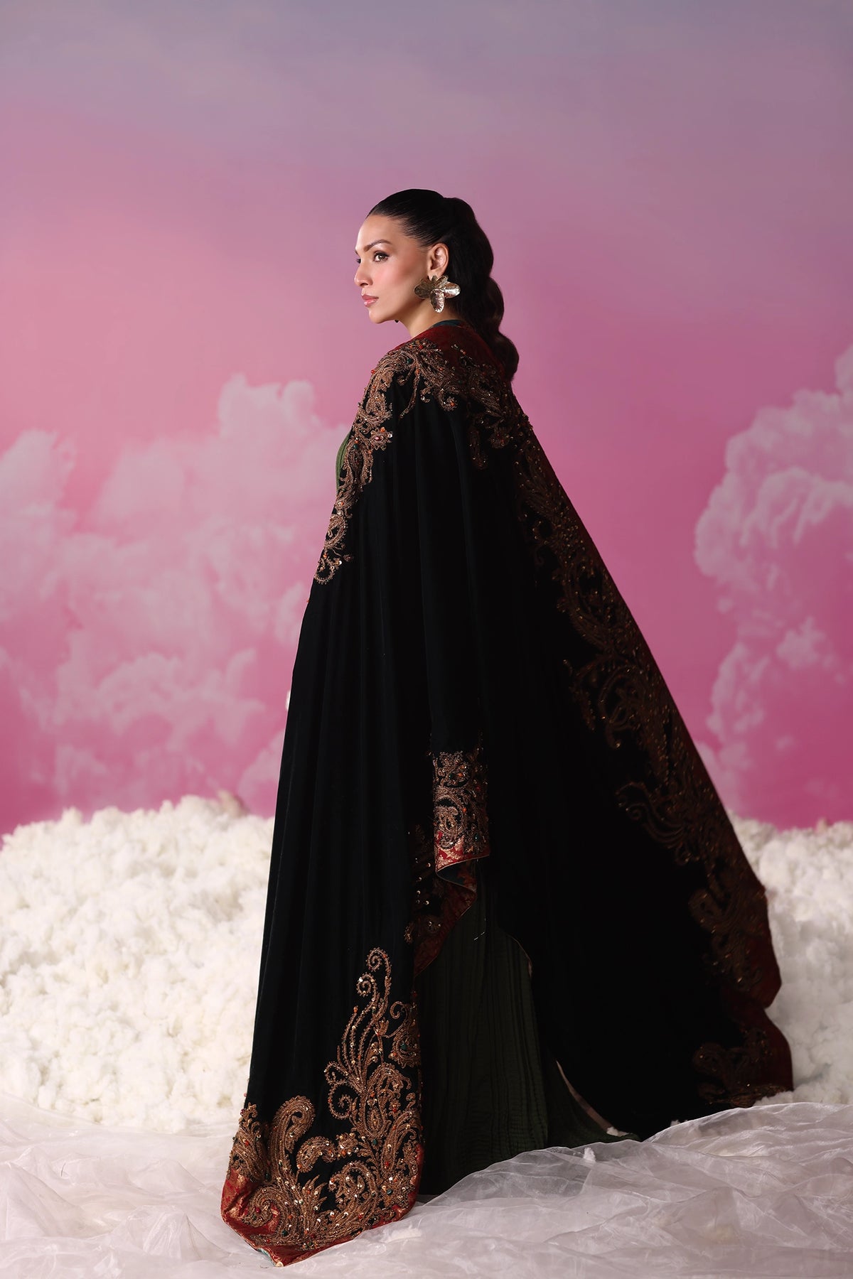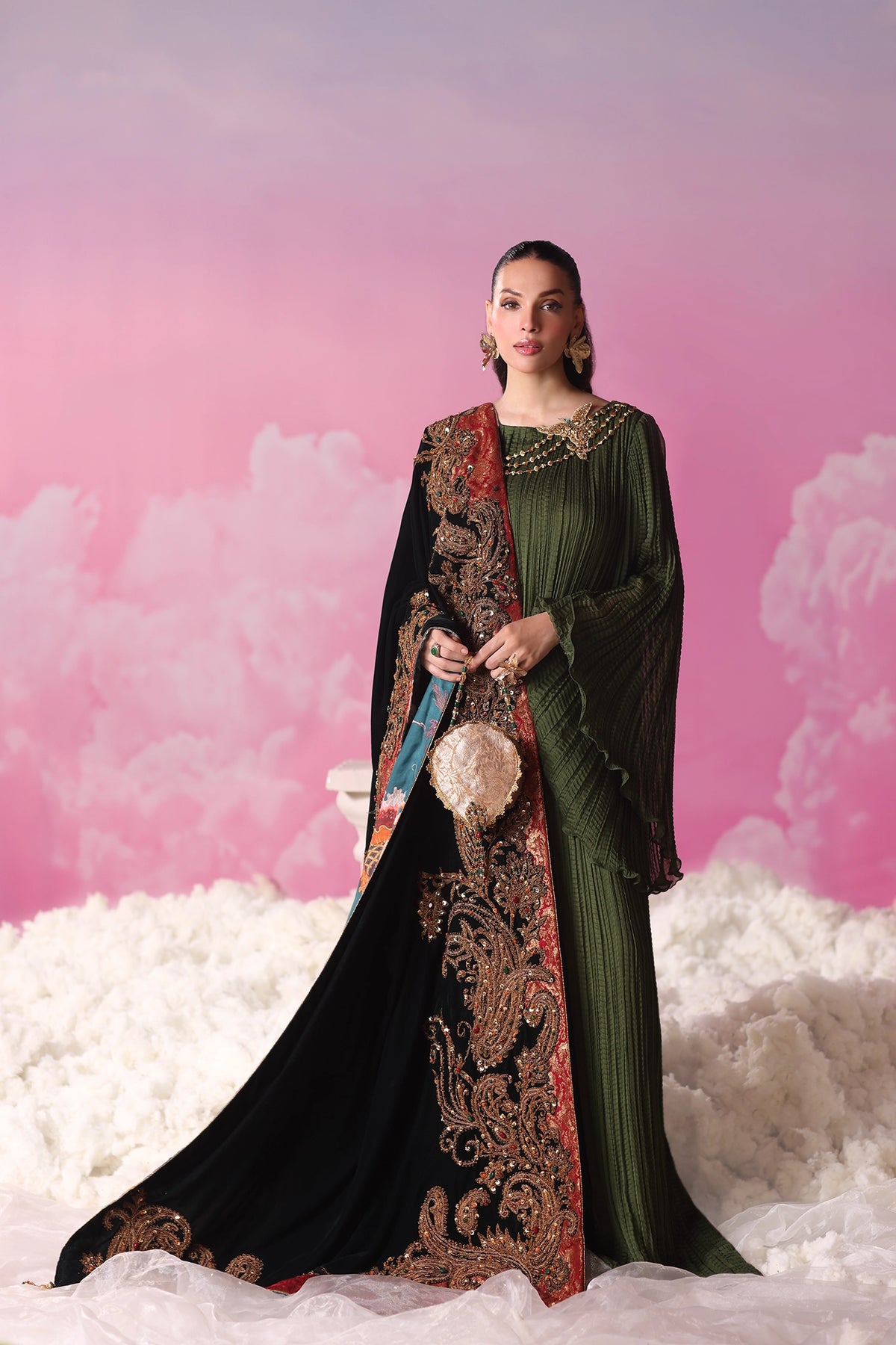 Crafted with painstaking research and long hours of handwork, Emerald Éclat embodies couture grandeur — opulent, chic, and destined to captivate.