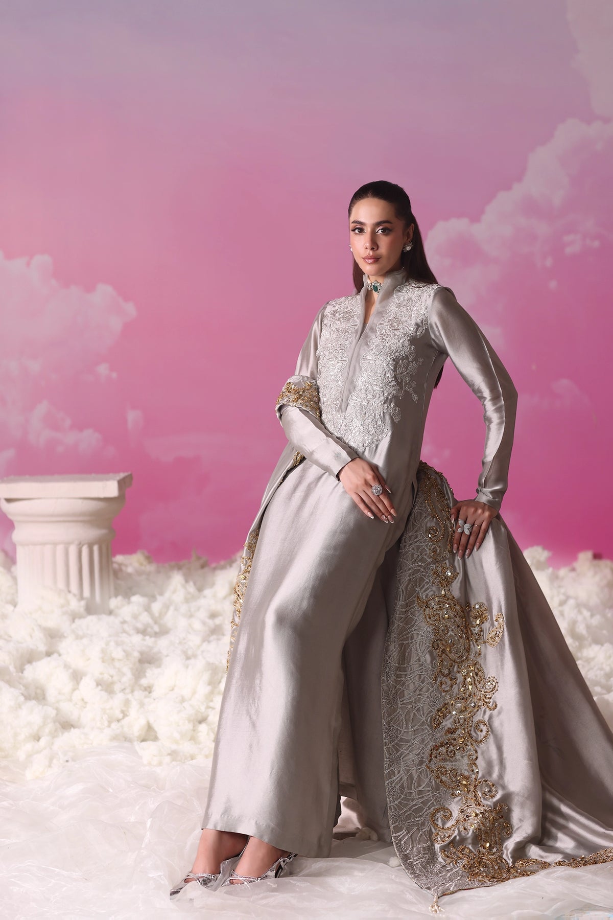 Musferah Saad’s atelier devoted long hours of research and artisanal handwork to perfect Lunar Mist, creating an ensemble that embodies celestial grace and couture craftsmanship.